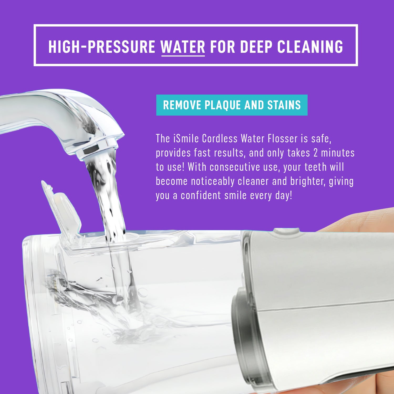 Our Cordless Water Flosser uses high-pressure water pulses to remove stubborn food particles and plaque, even from hard-to-reach areas. This thorough cleaning promotes healthier gums and helps keep your teeth naturally white.